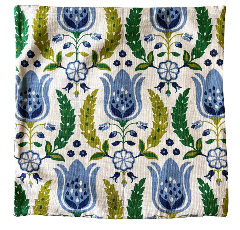Sale: 16x16 Green and Blue Tulips Pillow Cover - Annabel Bleu