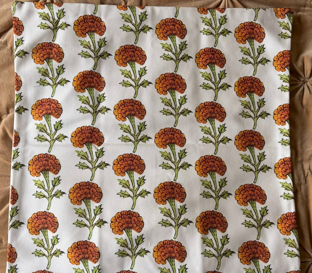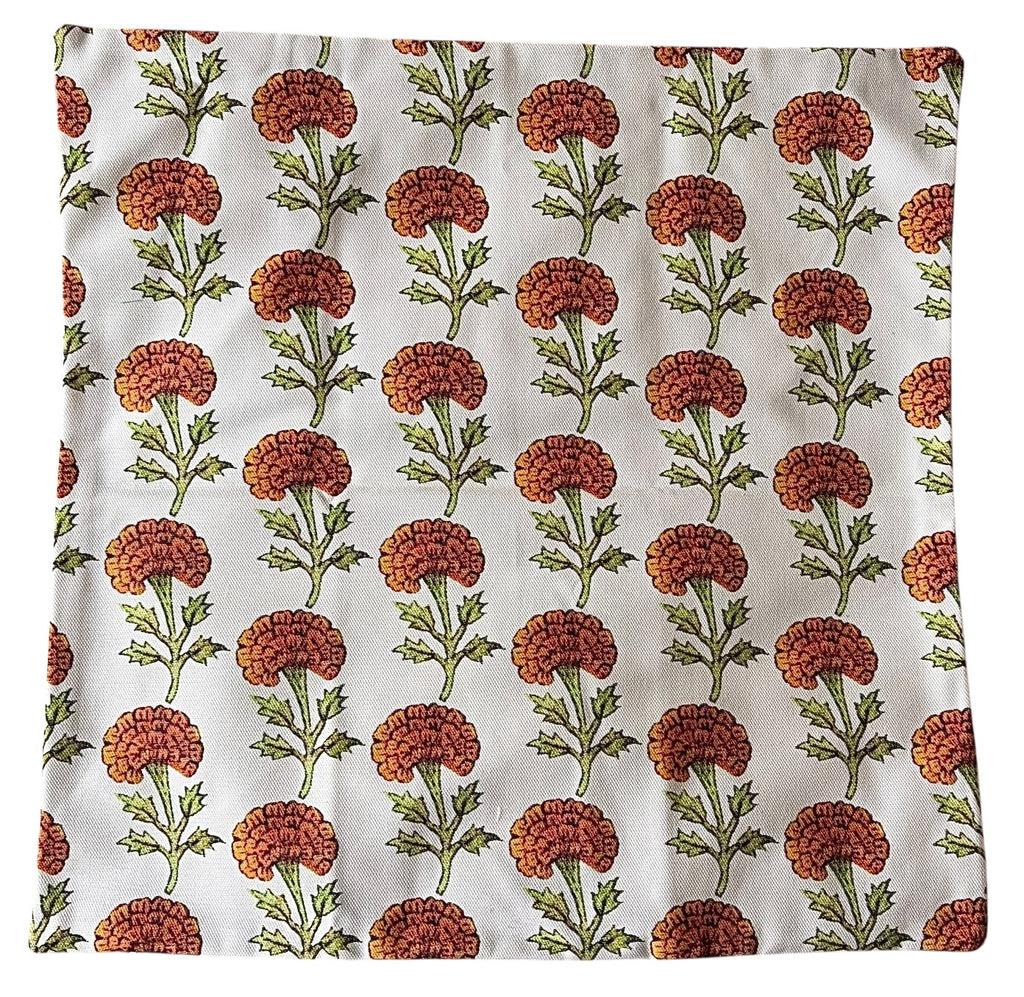 Sale! 20x20 Block Printed Marigold Pillow cover, double sided, invisible zipper.