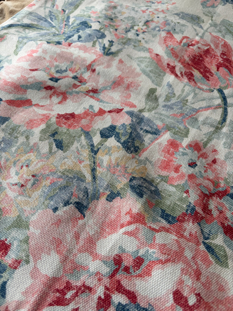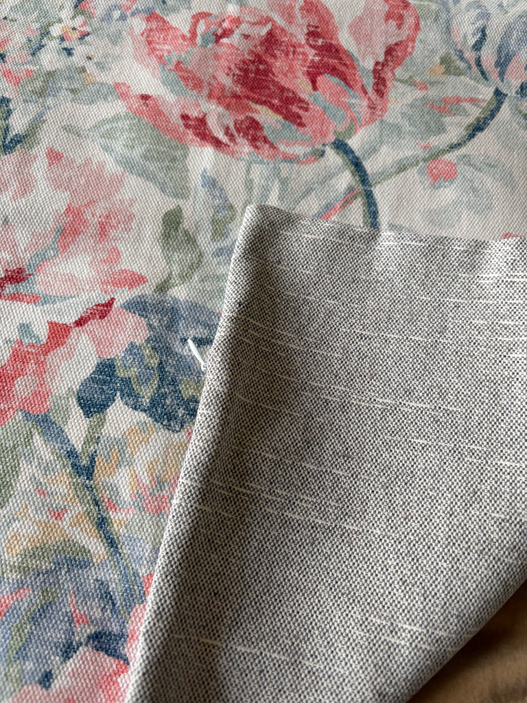 Sale! 22x22” Blue, Coral, and Grey Floral Pillow Cover, grey solid back, with an invisible zipper.