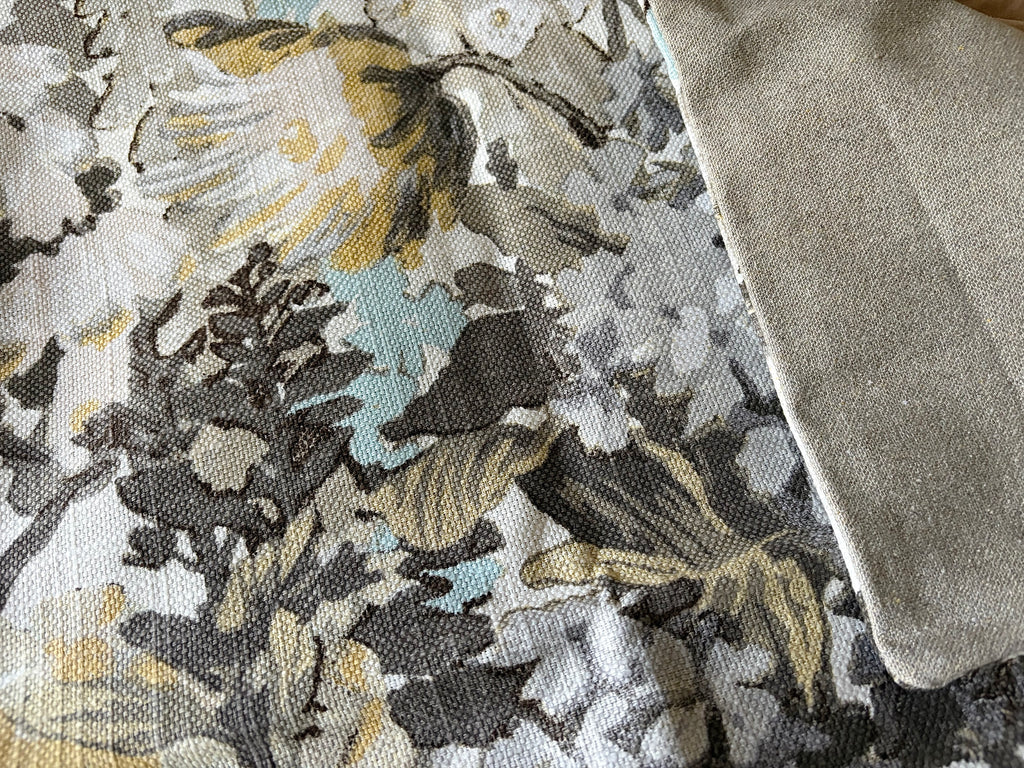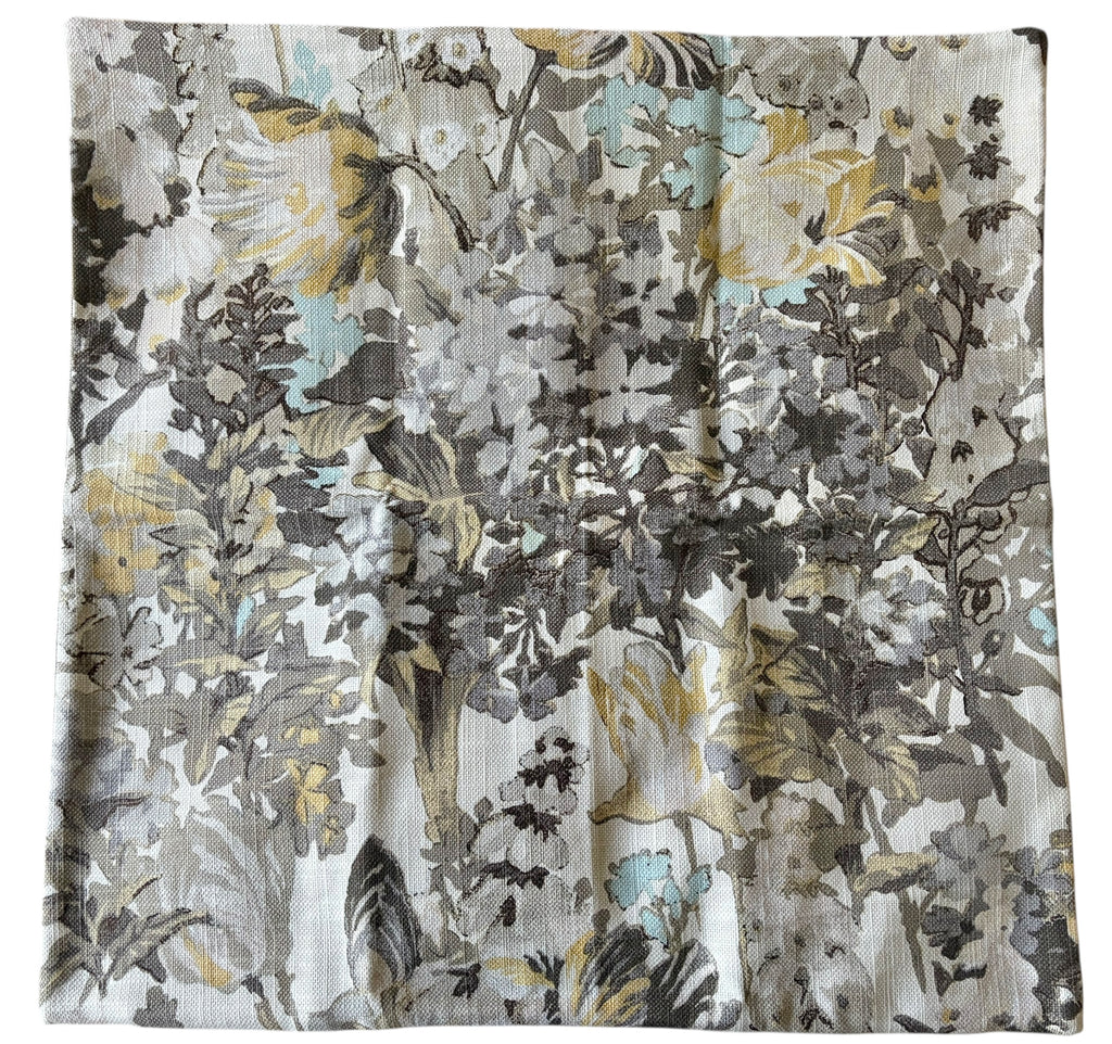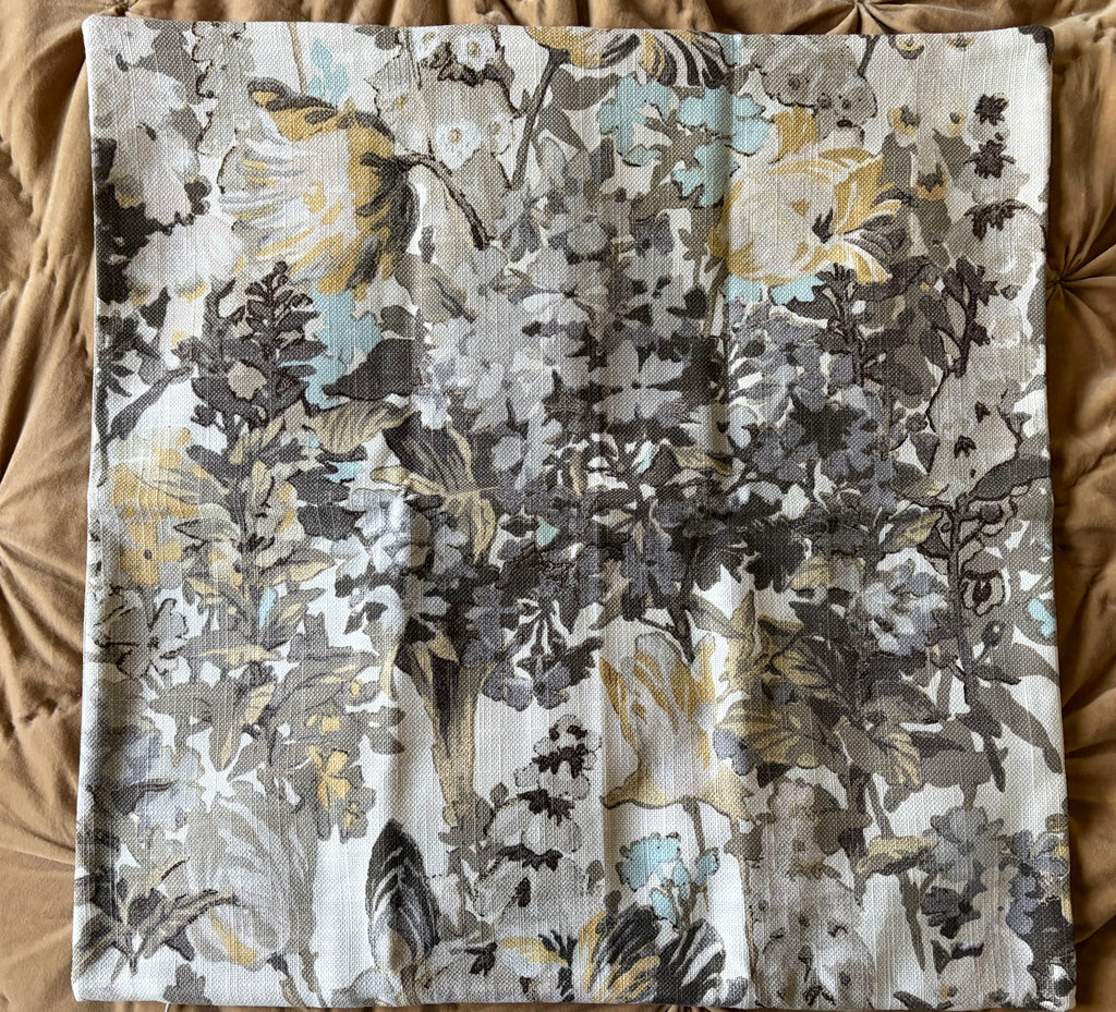 Sale! Grey and Yellow floral pillow cover, size approximately 24x24” with solid back and invisible zipper.