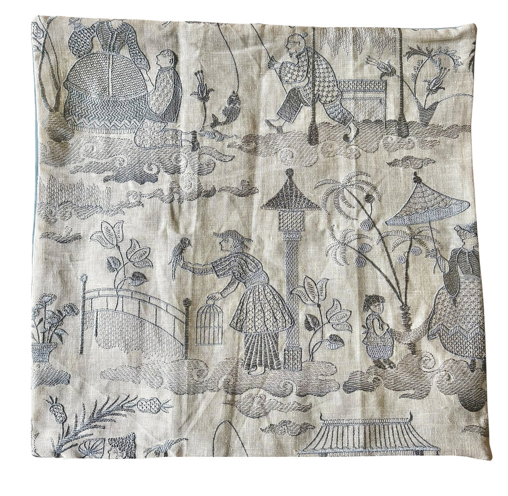 Sale: Schumacher Bassano Toile Blue Embroidered Pillow Cover 16x16